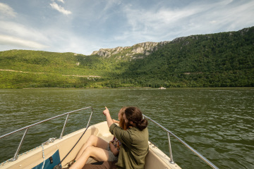 U Dunaje pod Eibenthalem je pak možno navštívit nejužší a nejhlubší místo na Dunaji, Kazane Mare a Mici, skalní sochu Decebala v zátoce Mraconia nebo velkou krápníkovou jeskyni Ponicova, o které píše Alois Jirásek v knize Na Krvavém kameni. Od sochy Decebala je možno pomocí výletu po Dunaji zavítat do jeskyně Veterani, která dostala svůlj název po vojevůdci Friedrichu von Veterani, který se zasloužil o obranu Banátu při snaze Turků prolomit se do Evropy a na srbský břeh Dunaje, kde je slavná deska Tabula Traiana.